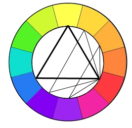 Для резкого контраста можно экспериментировать с 3-4 цветами. Максимально ярким считается сочетание красного, синего и желтого. Если провести соединительную линию между ними внутри цветового круга, то получим равносторонний треугольник. Таким образом, путем перемещения этого треугольника внутри круга вершины указывают на три цвета, которые идеально сочетаются и контрастируют друг с другом в интерьере. Для более мягкого контраста вместо правильного треугольника рисуем равнобедренный и действуем также. Полученные сочетания можно смело использовать в любых интерьерах.